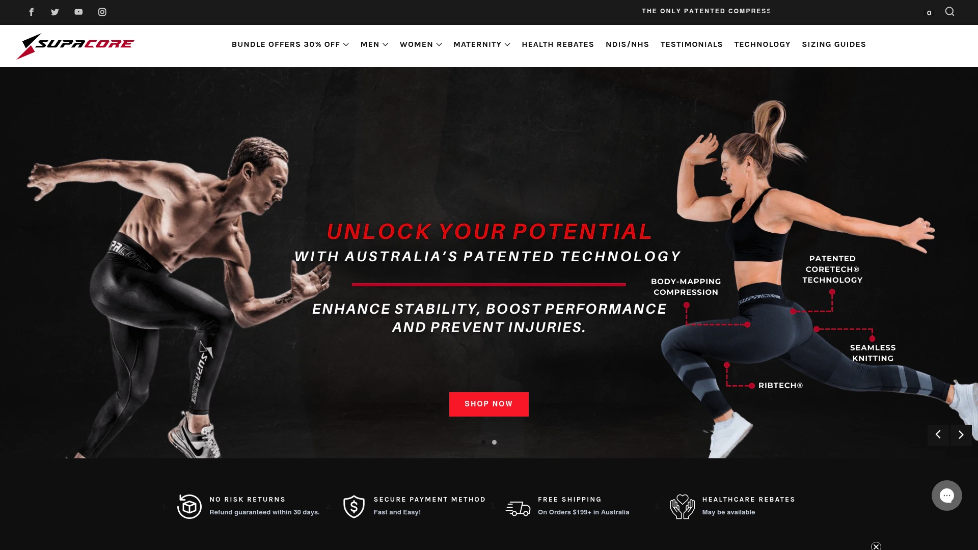 Supacore combines patented compression technology with medically informed design to serve athletes, pregnant women and people managing POTS. The brand prioritises recovery and targeted support while offering global shipping and health rebate compatibility.