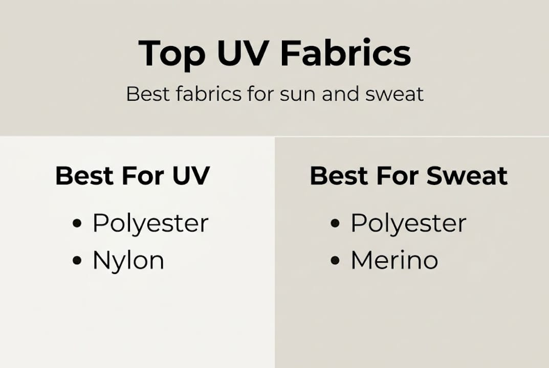 Cotton: Affordable and comfortable in casual settings, but it performs poorly for UV protection and hot-weather sports. Avoid it for serious outdoor training.