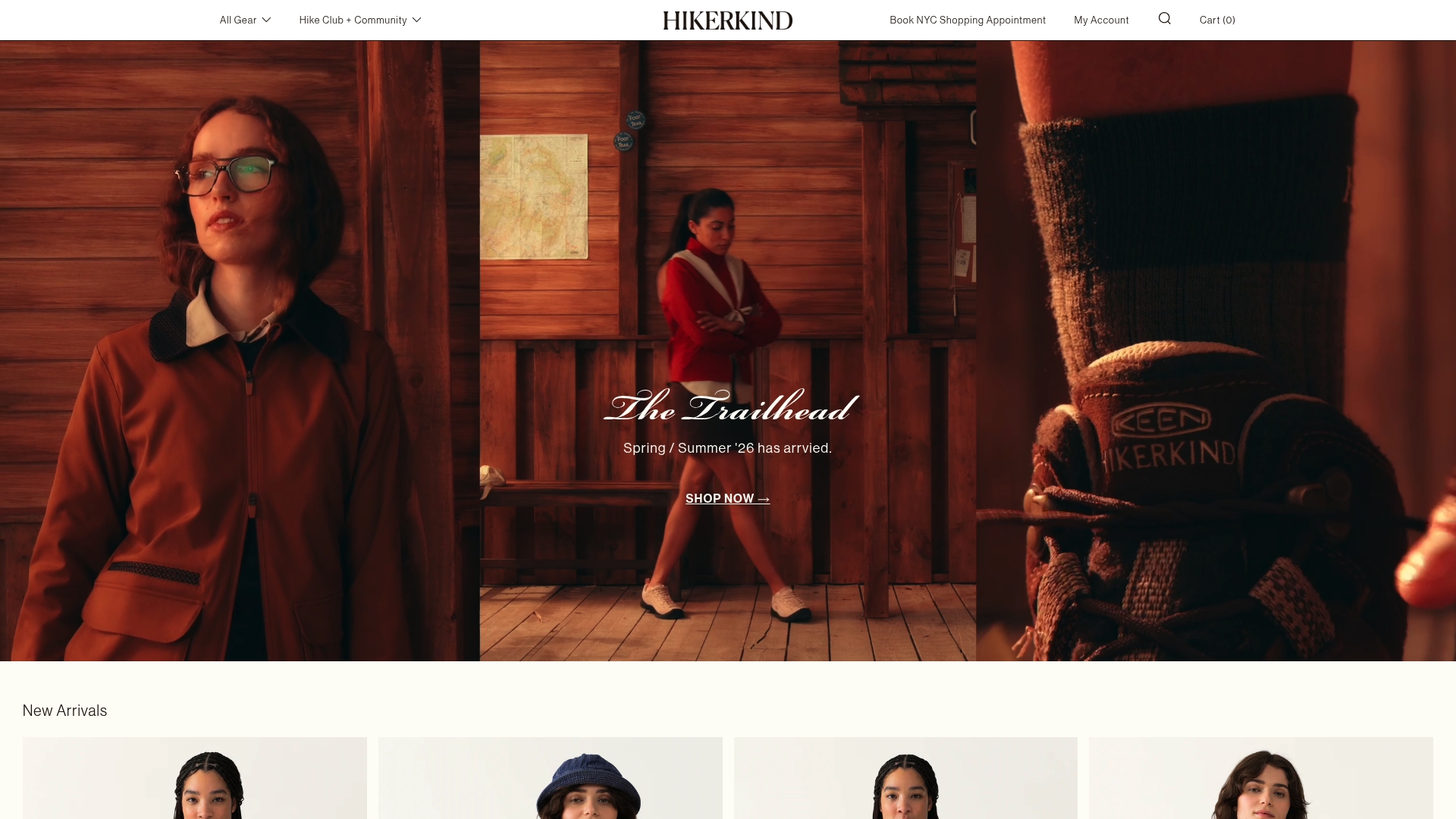Hikerkind offers a wide range of items across tops, bottoms, midlayers, jackets, dresses, footwear and accessories, plus seasonal collections tailored for spring through winter.