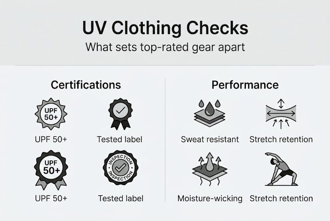| Fabric construction matters | Dense, quality-woven or engineered knits balance breathability with effective UV safety. |
