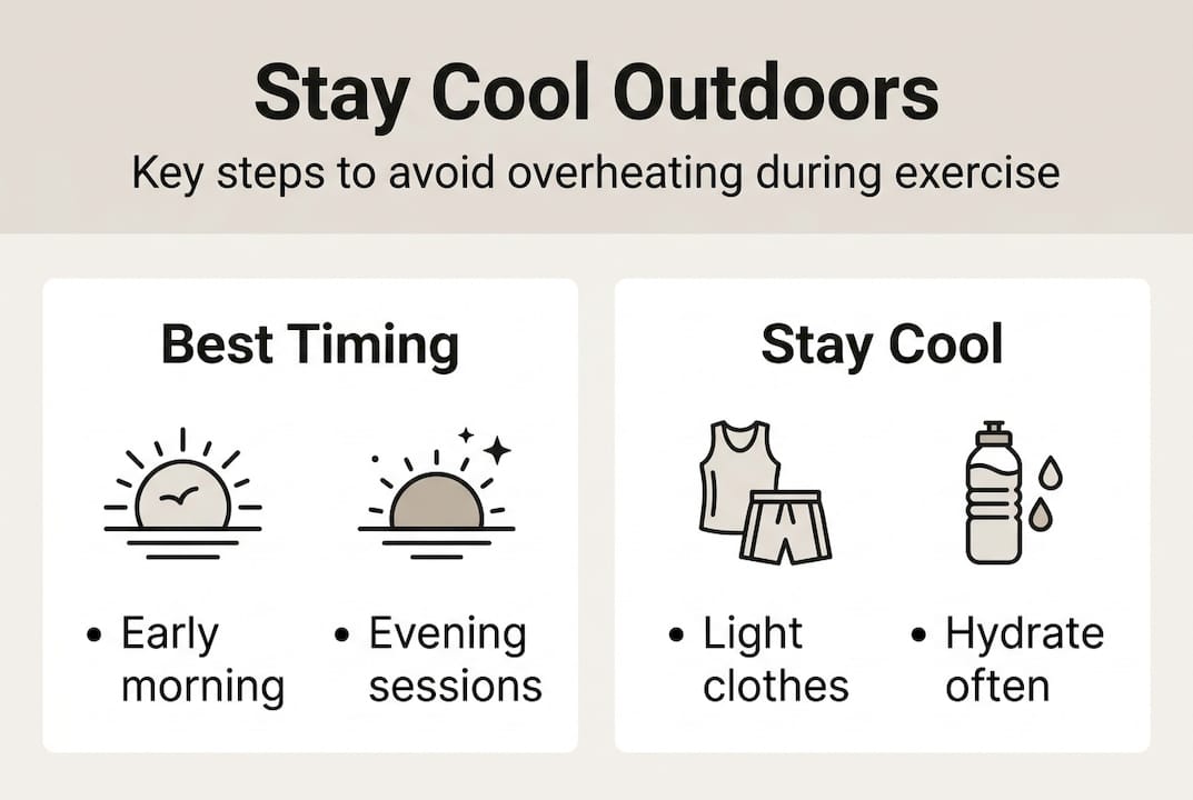 Check the Wet Bulb Globe Temperature before heading out. If WBGT exceeds 92°F (approximately 33°C), skip outdoor exercise and move your session indoors.