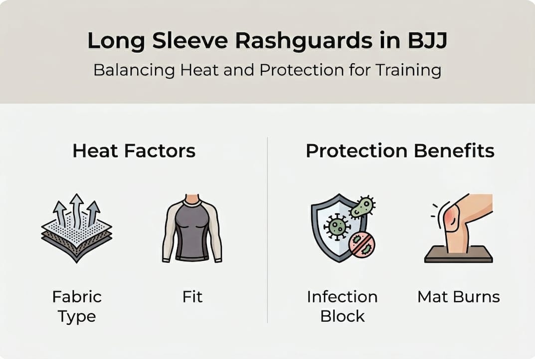 You've probably heard training partners claim that long sleeve rashguards turn every roll into a sauna session. This widespread belief stops many BJJ practitioners from choosing full coverage, despite the hygiene and protection benefits. But does the science actually support this overheating concern, or is it more about fabric choice and personal preference? Let's examine what really affects comfort during intense grappling sessions and how to make smart gear decisions that keep you protected without compromising performance.