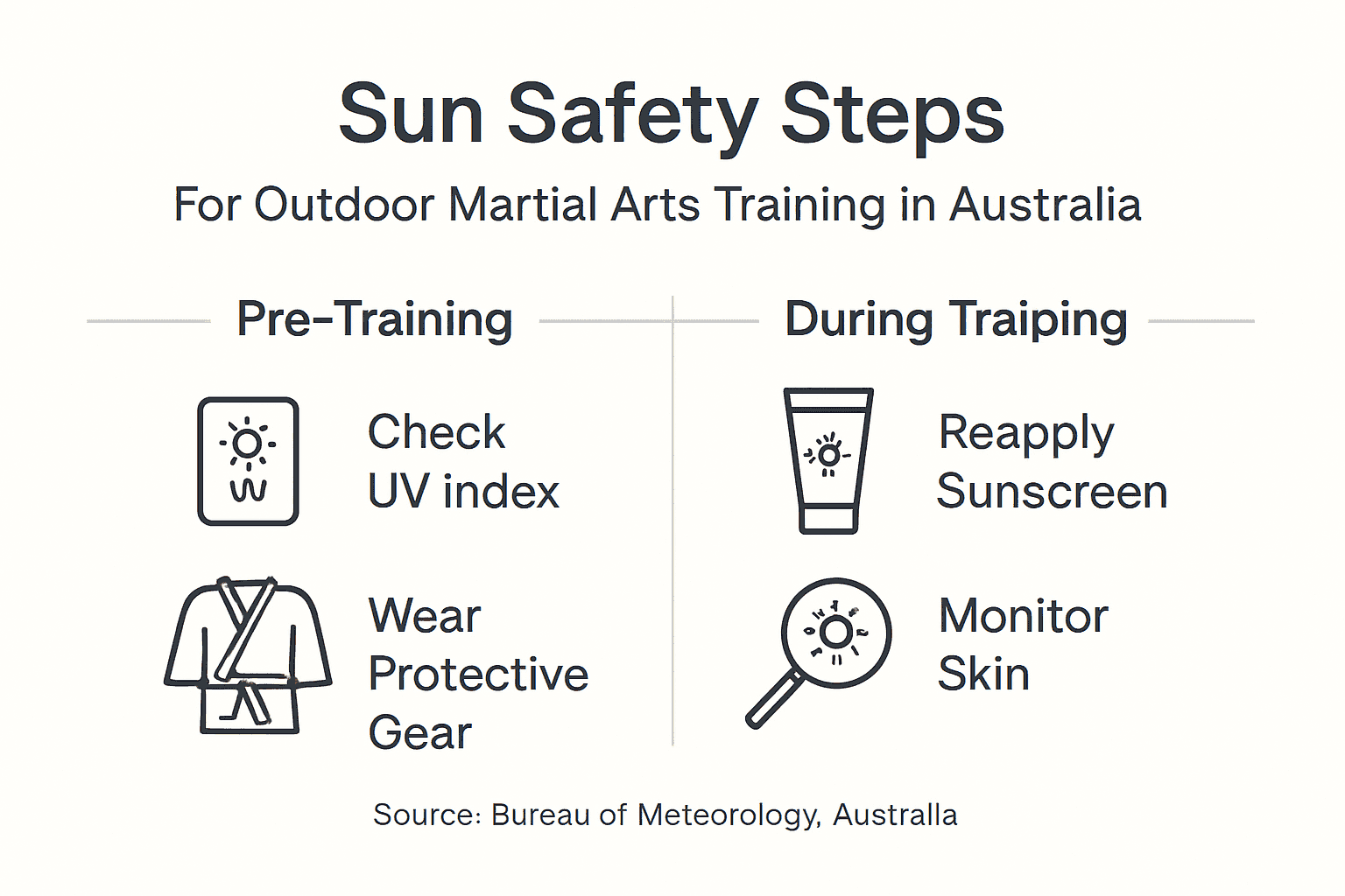 Training martial arts outdoors in Australia means facing intense sun exposure that can lead to serious skin damage and discomfort. The article highlights key challenges like the need for UPF 50+ rashguards, wide-brimmed hats, and consistent sunscreen application to combat harmful UV radiation during BJJ, MMA, and Karate sessions. Protecting your skin while maintaining unrestricted movement is critical for your safety and peak performance.