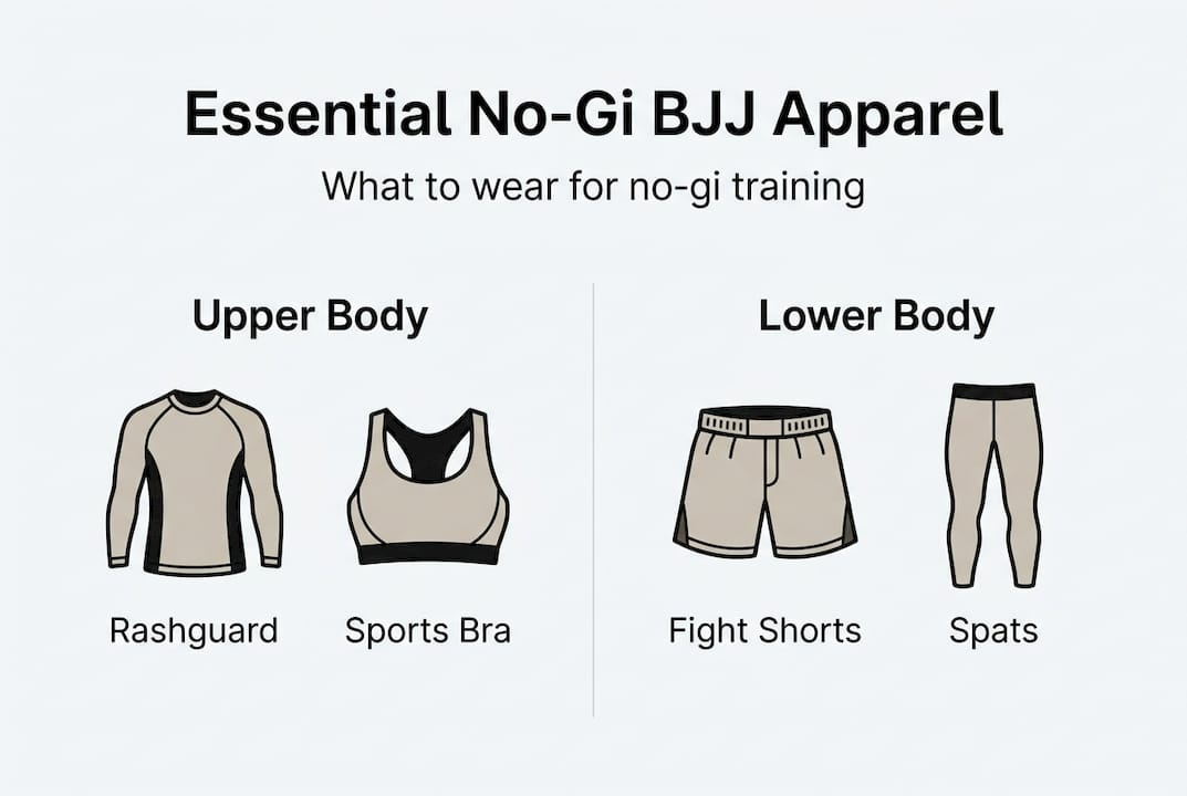Many BJJ practitioners step onto the mat for their first no-gi class unsure of what to wear. The absence of a traditional gi creates confusion about appropriate training attire. No-gi apparel commonly includes rashguards, shorts, and compression garments designed to enhance performance and hygiene. Understanding these components transforms your training experience by improving comfort, movement freedom, and skin protection. This guide clarifies what no-gi apparel includes and helps you select the right gear for your BJJ journey.